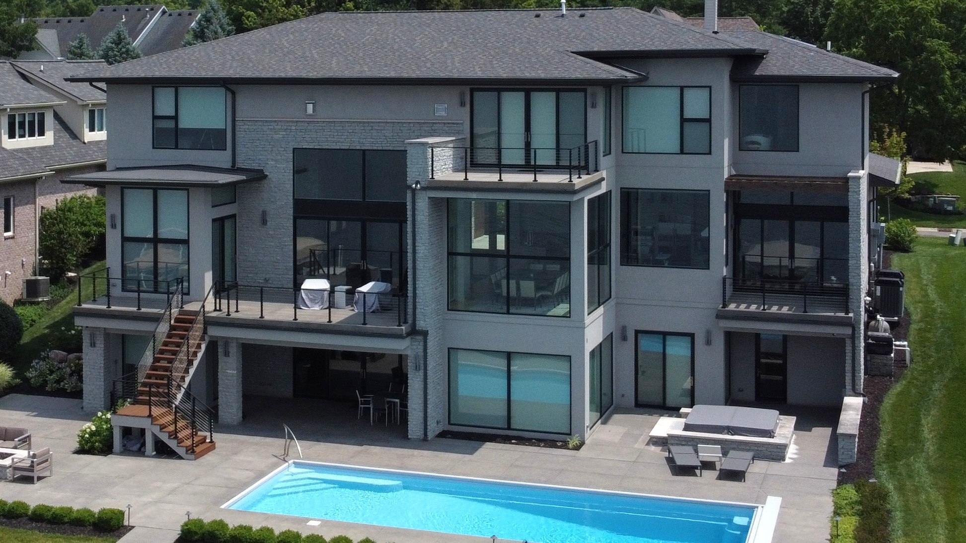 Designed for clients moving from California, this sleek Modern home overlooks Geist Reservoir with an abundance of glass and multi-slide doors.