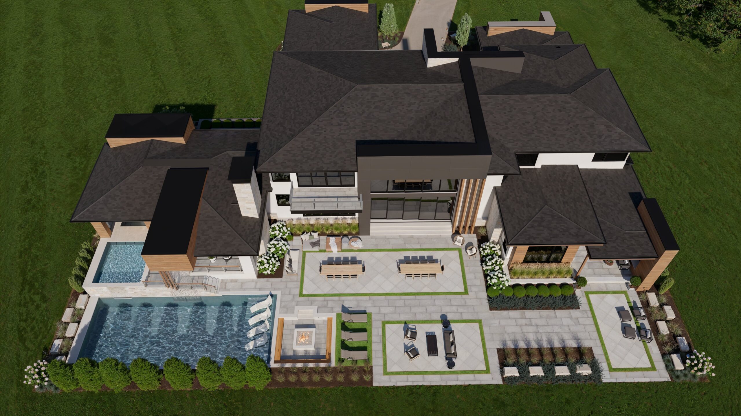 Wood “fins” front, back, and also carrried into the interior, give this home a unique flair on the Holliday Farms golf course.