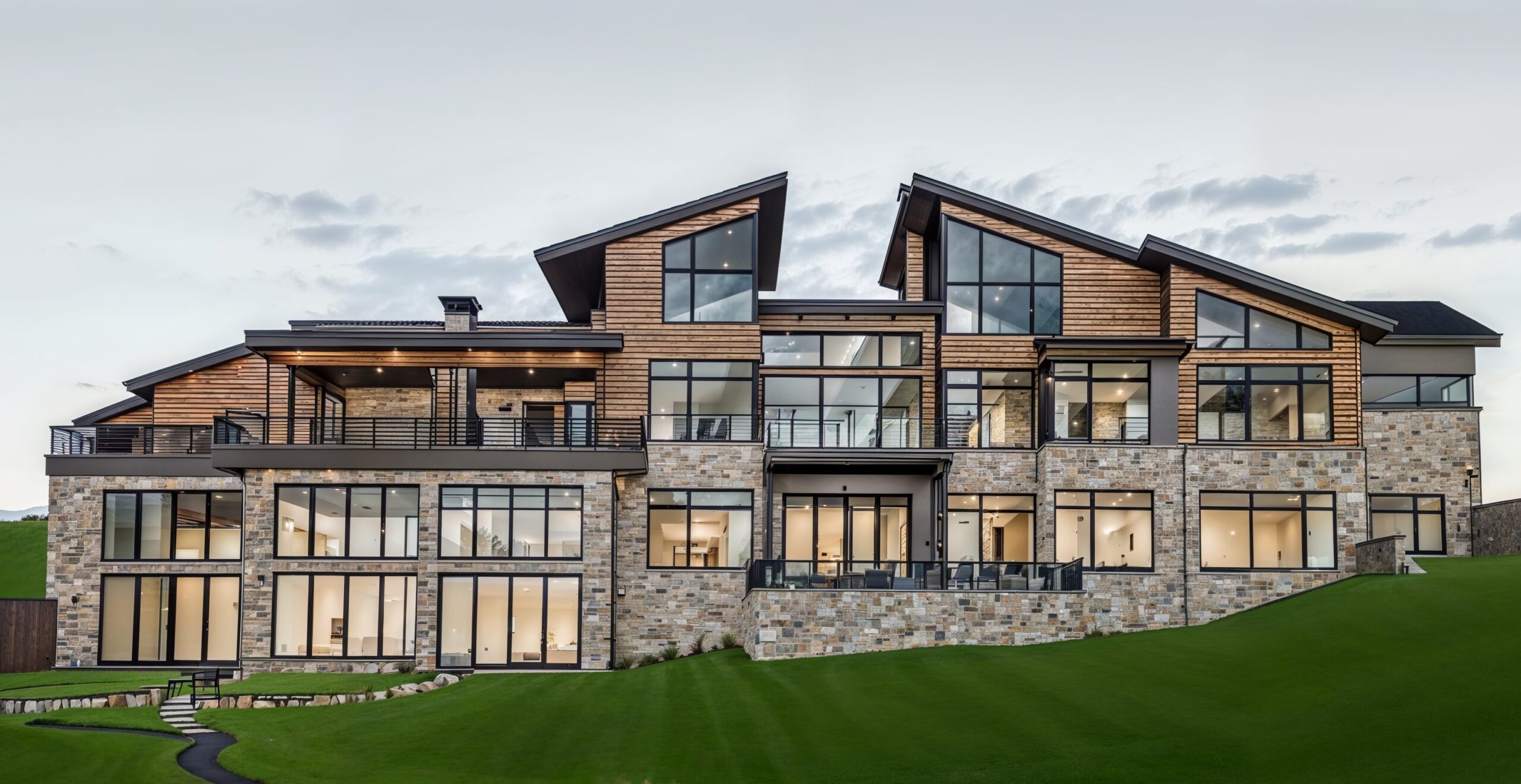 A lot sloping so severly that the double-height basement is still a full walkout gave the opportunity for a full size indoor pickleball court overlooking the golf course.