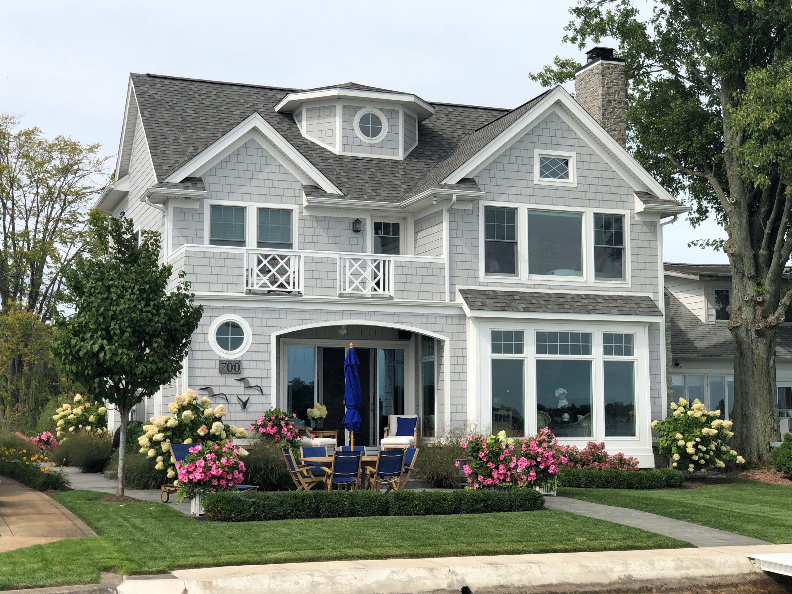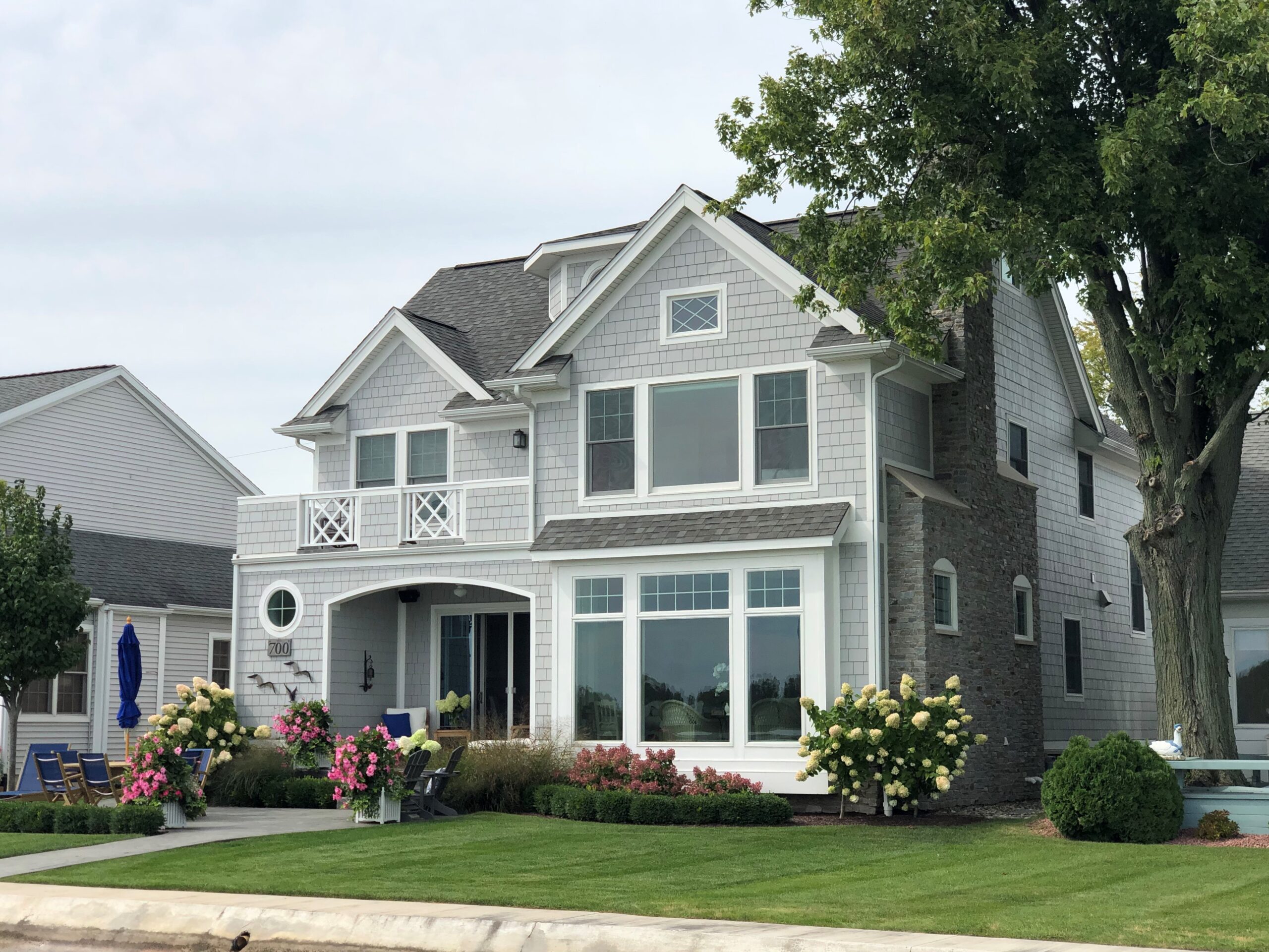 This charming cottage, wrapped in shakes, feels quite at home on its lakefront setting.